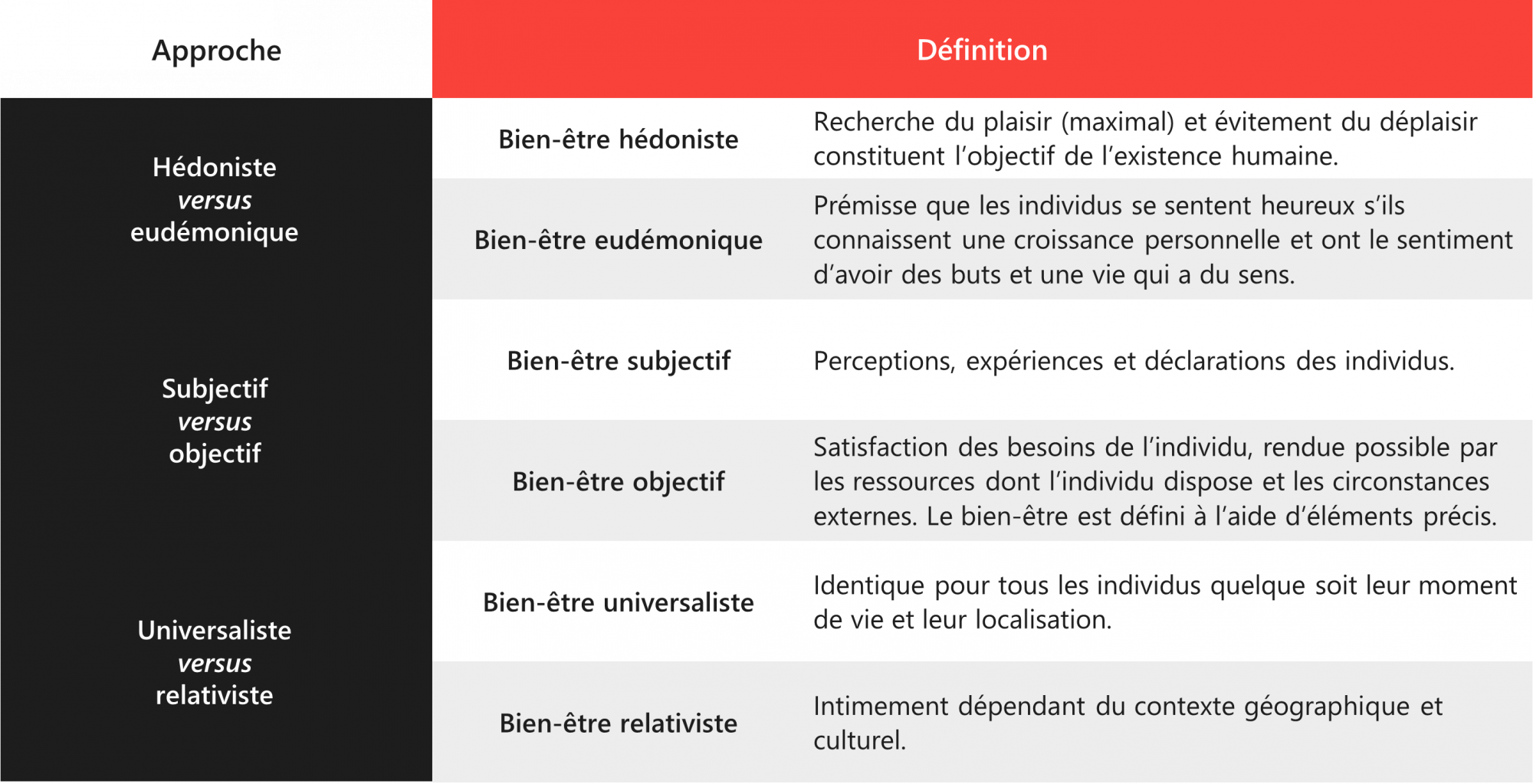 • Les différentes approches du bien-être